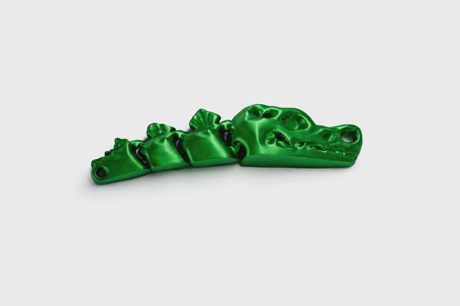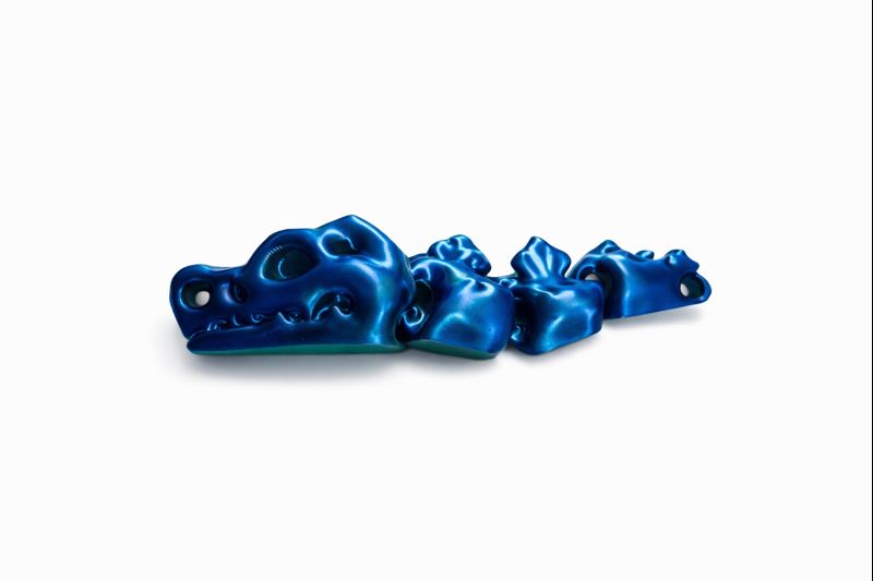 Flexi Dinozaur w wersji niebiesko-zielonej to dynamiczne połączenie nowoczesnego designu i charakterystycznej kolorystyki, która natychmiast przyciąga wzrok. Płynne przejścia barw podkreślają segmentową, ruchomą konstrukcję i nadają figurce unikalny, kolekcjonerski wygląd.